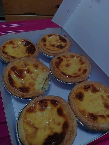 「一個9元,其實不貴喔。」這麼好吃的蛋塔,當然要多扛幾盒走啦。
