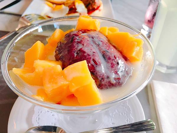 「這個冰好好吃。」涼涼的飯後甜點,是紫米和芒果的組合,意外地搭。