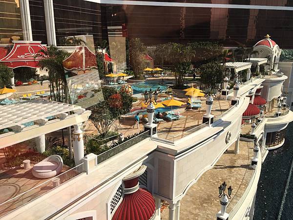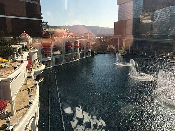 「怎麼有游泳池。」低頭一看才發現,雖然是冬天但澳門氣溫相當宜人,要游泳也是很舒服的。可惜纜車時間很短,一下就繞完了。