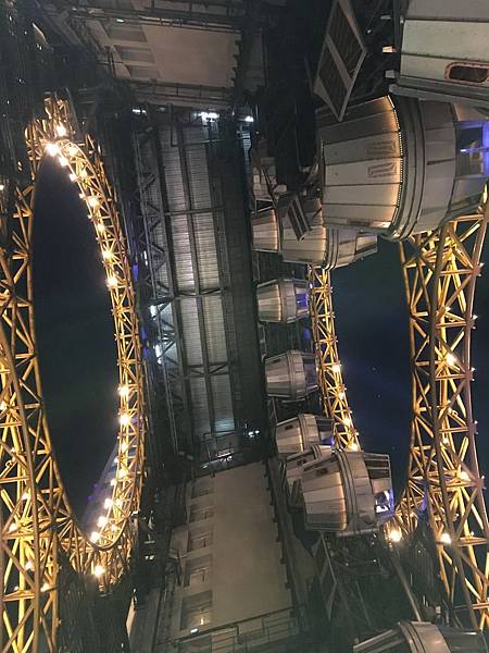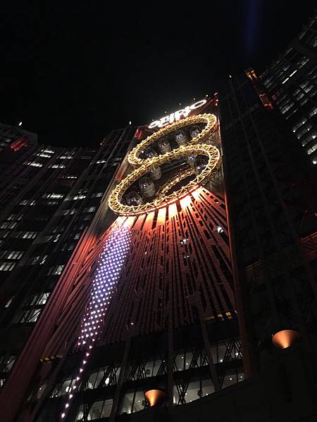 如果說澳門的各個酒店是在比拚,永利皇宮裡面有纜車,那新濠影匯可以拿出來說嘴的,絕對就是摩天輪了。標高是130米,而且是少見的8字形摩天輪,我們拿著昨天房型剩下的100元折價券,準備要來體驗將澳門美景映入眼底的感覺了。