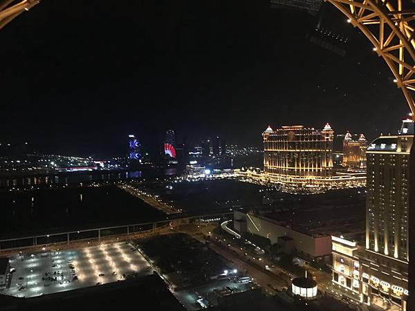 「可以看好遠喔。」在摩天輪上面欣賞,因為附近完全沒有高的建築物,跟梅田的HEP FIVE摩天輪不同,景色完全一覽無遺,因此在上面欣賞澳門的夜景,算是一個很棒的體驗。