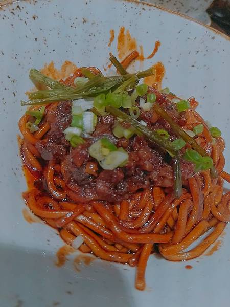 「這也是好辣啊,不過麻的還蠻夠味的。」香氣十足的川式紅油炒手。