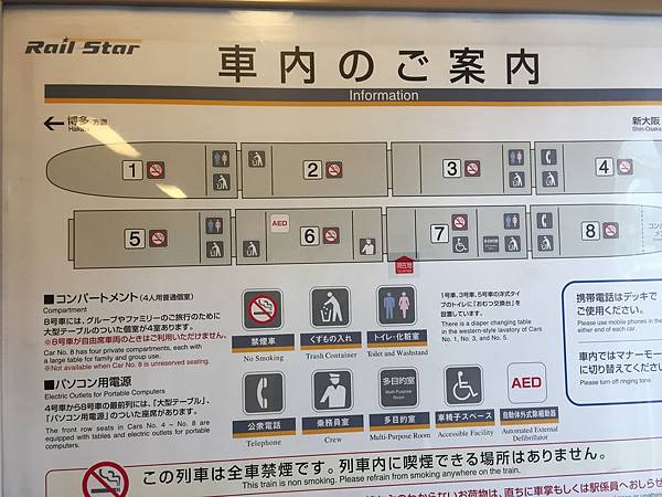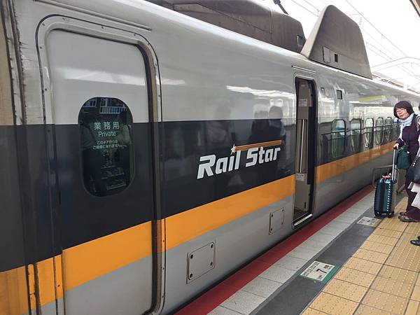 今日搭的這班,車種叫光號鐵路之星(日語:ひかりレールスター),是JR西日本在2000年投入營運的車種,隸屬於700系列車的其中一種。只有8輛編組是和山陽新幹線旅客較少的特性。