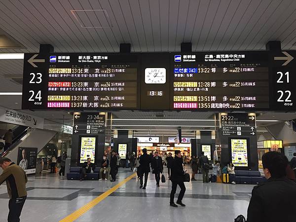 車站內很貼心有說列車的編組,分成8和16兩種,只有會開到東京的希望(のぞみ)、光(ひかり)有16節編組,好處是位子多,壞處是要走很遠才會到自由座車廂啊。