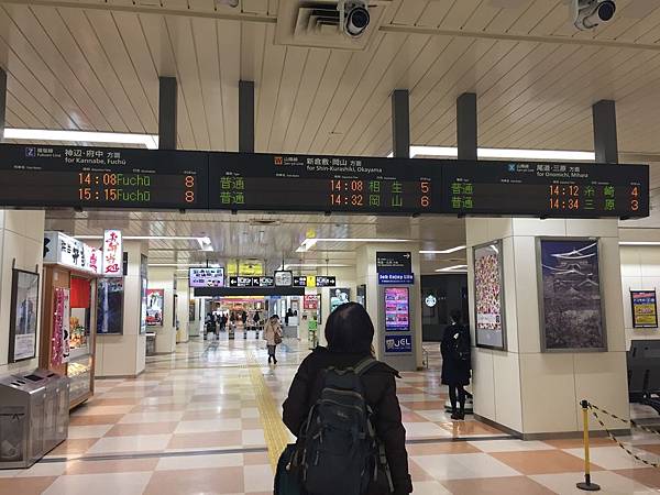 看最右邊的PIDS,糸綺、三原都是我們可以前往的方向。從新幹線到在來線,需要出站在進站。
