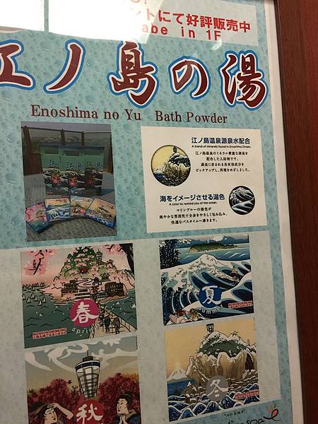 走了一整天,最舒服的絕對是泡個溫泉好好休息一下,若可以再配上正好要掉下的夕陽更是完美,而這樣的願望就在我們傍晚要體驗的「江之島島溫泉」實現了,竟然是天然溫泉又有什麼可以錯過的道理。這裡屬於「鈉元素氯化鈉強鹽泉」,終年約34度,可治療肌肉、關節痛,拯救寒性體質和消除疲勞。