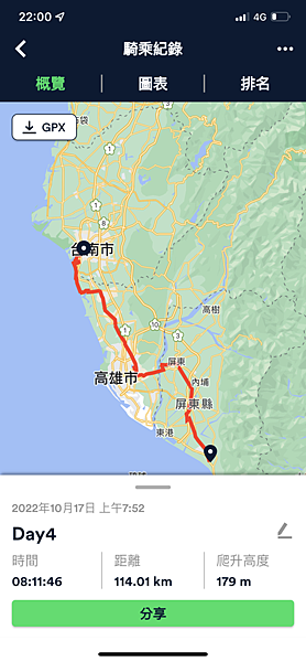 總結一下今日的旅程吧,今天的里程數是114公里,爬升高度是179公尺,跟昨天差距其實也不大,唯一可惜的就還是因為下雨,必須在不少地方「強迫休息」,但看到了無邊際海景和浪漫星空,且最後入住在一個溫馨、老闆娘健談的客棧,讓今天的一切又都還算值得。明天預計要繞過鵝鑾鼻,旅程就等於過半了,唯一想法就是希望,明天有個好天氣啊。