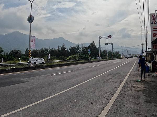 想不到經過楓港後,噩夢真的出現了。同時碰上颱風外圍環流和落山風的,風不是預想的逆風那麼簡單,而是超強側風,大到用騎的會被掀倒的窘境。加上又有很多地方在修路,車道窄到剩下一線,又有【儒單車環島2-1】苗栗竹南-台中大甲 綠光海風自行車道 西湖溪自行車鐵橋摔車的陰影,讓我毅然決然決定,邊牽邊前進吧。若風稍停歇就可騎行,風太大就選用牽行。