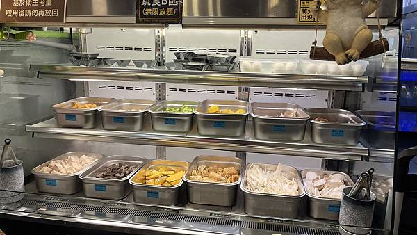 肉為單點,其他自助吧就要靠自己「盡力而為」了。蔬菜種類算滿多元,青菜和加工火鍋料比大約3:1。