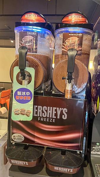 飲料不只一般可樂機,竟然還提供HERSHEY'S巧克力冰沙,來上一杯覺得幸福。