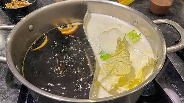 接著就要進入今日的主角火鍋啦。今天選的湯底是壽喜和牛奶。