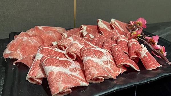 肉總共有大理石和牛、梅花豬、培根豬和小羔羊4種選擇,據說叫大理石是因為他的油花,但每種肉看起來其實都好漂亮。