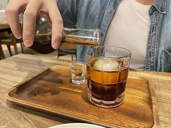 飲料選擇具有「花香、焦糖、酒香」的冰釀咖啡。店家並附上一個聞香杯,讓消費者能先享受它的香氣。老實說我對咖啡的香氣雖然不是很懂,但就是很舒服的香。冰釀咖啡有個好處,等於就是自己調配咖啡濃度。咖啡入口後,可以感受到它的圓潤口感,咖啡香氣不會猛然竄出,而是柔和地慢慢包覆整個口腔,最終香氣停在齒縫裡。