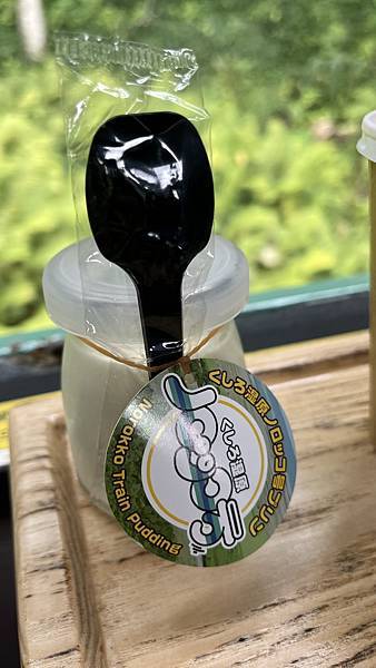 決定買一個「ノロッコ号プリン(Norokko號布丁)」來吃,這款「ノロッコ号プリン」是由釧路人氣法式餐廳特製的牛奶布丁,使用北海道產牛奶製作,口感滑順綿密,奶香濃郁卻一點也不膩口。
