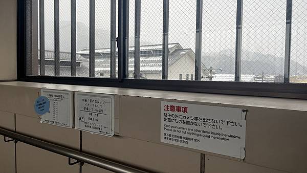 動畫迷最想目睹的,絕對就是從天橋上,看到列車停在月台上的場景。天橋旁也特意標示飛驒古川站的列車時刻,幫助大家掌握電車來訪的時間,可以更精準。
