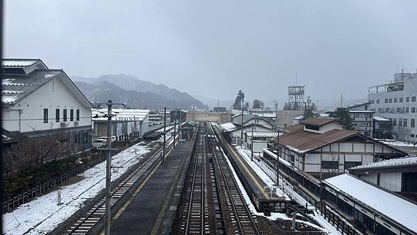 首先造訪的景點,就是要去車站旁的天橋,動畫中這幕應該不少人印象深刻。飛驒古川站離高山站只有2站的距離,如果搭普通車,約莫20分鐘的車程。