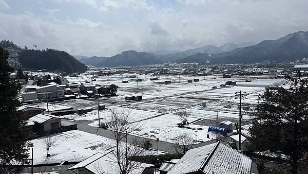從階梯上往外看去,整個農田都被雪白色覆蓋。