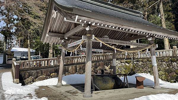 接著迎面而來的,就是氣多若宮神社的拜殿。採用傳統日式切妻造屋頂,黑瓦白牆相映,展現古樸美感。為了抵禦飛驒嚴冬,建築兩側設有透明防風帆布,保護參拜空間不受寒風侵襲,展現出雪國神社獨有的生活智慧。