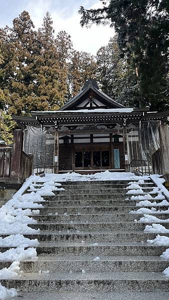 接著終於抵達神社本殿前,氣多若宮神社擁有超過400年歷史,主祀神明為大國主命與御井神,是古川地區的守護神,由於主殿隱藏在參天杉樹之中,環境幽靜神聖,神社被當地人親切稱為「杉本大人」。