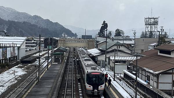 古川站前的天橋,是瀧為了尋找三葉,來到古川站下車後的經典場景。一天大概有10班車停靠在月台,13:32剛好有一班停靠,來拍張跟電影場景超相似的美照吧。(詳細介紹:飛驒古川朝聖《你的名字》!天橋場景超經典、氣多若宮神社紫色鳥居超特別)