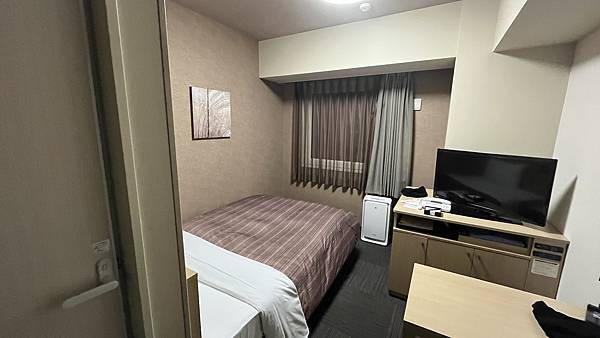 進到這個10平方公尺的房間後,其實我覺得不算小,在塞進一張床的同時,還有電視櫃和書桌的空間,對沒有行李箱的我來說,空間算是舒適。
