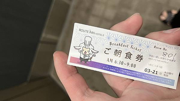 翌日一早前去吃早餐,只要有入住「ホテルルートイン高岡駅前」的房客,都是會免費附早餐的。至於憑證就是入住時發的早餐券了。