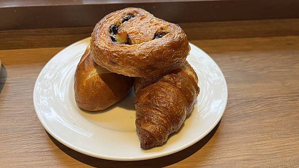 不過route inn主打的,就是有現烤可頌與丹麥麵包,替旅人帶來香氣四溢的美味早晨。除了我已經拿的奶油可頌,摩卡旋風丹麥也是他們狂推的品項,當然不能錯過。